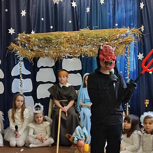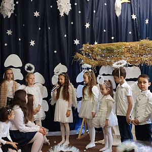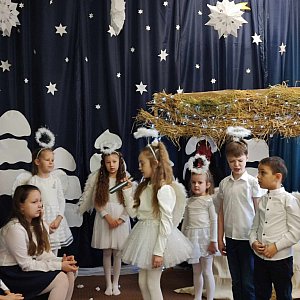 Uczniowie wystawili dla nauczycieli, pracowników, rodziców i przyjaciół szkoły przedstawienie jasełkowe. W tym roku pokazali opowieść o wyjątkowej treści, uzupełniając tradycyjną historię Bożego Narodzenia o szkolną i dziecięcą perspektywę.