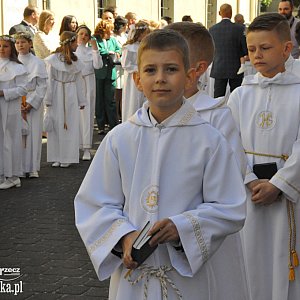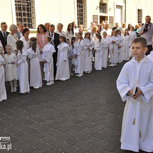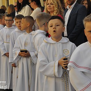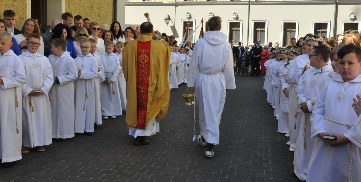 Ks. proboszcz Grzegorz Kamzol pobłogosławił głównych bohaterów uroczystości i wprowadził do kościoła. W świątyni odbyła się dalsze część I Komunii Św.