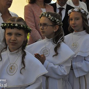 Komunia Św. rozpoczęła się w niedzielę 12 maja w samo południe. Przed świątynią zebrały się dzieci wraz z rodzicami i najbliższymi.
