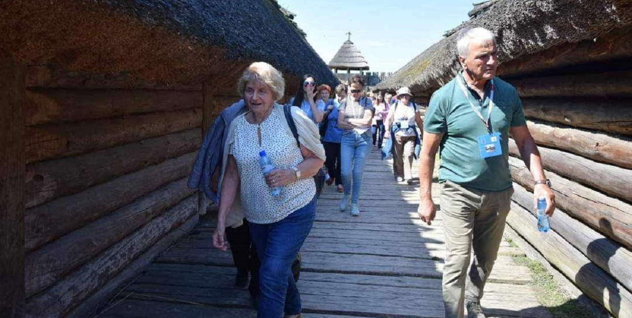 Najpierw turyści zwiedzili słynny gród Biskupin będący pomnikiem historii Polski. Tam, na terenie muzeum archeologicznego obejrzeli rolniczą osadę neolityczną, obozowisko łowców, osadę obronną i wioskę piastowską. Z zaciekawieniem obserwowali dawne standardy życia. Nie zabrakło również wystawy obejmującej dawne stroje, makiety grodu i gliniane naczynia. Następnie udali się na chwilę wypoczynku z filiżanką kawy w dłoni i słońcem nad głową.