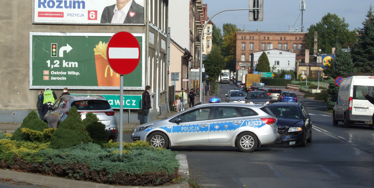 Kią kierowała 63-letnia mieszkanka Krotoszyna. Jej samochód w wyniku zdarzenia uderzył w auto marki Volkswagen Passat, którym kierował 40-letni mieszkaniec pow. pleszewskiego. Kierujący byli trzeźwi, nikt nie został ranny. Sprawczyni ukarana mandatem w kwocie 1 tys. 500 zł.