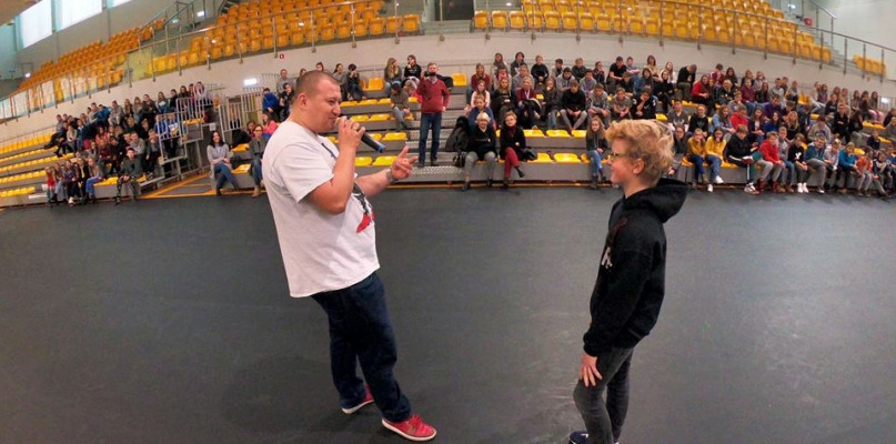 Spotkanie z młodzieżą prowadzili Łukasz Bęś - pseudonim Bęsiu i Jonatan Blank – Dj Yonas, którzy tworzą zespół RYMcerze. Projekt powstał z inicjatywy Fundacji Edukacja z Wartościami oraz raperów. W czasie spotkania z uczniami raperzy podzielili się swoim doświadczeniem życiowym w walce z nałogami. Ważne treści oraz forma trafiająca wprost do młodego odbiorcy pobudziły samoświadomość młodzieży w zakresie problemów uzależnień oraz ich skutków, a także zmusiły do refleksji nad sensem życia i odpowiedzialnych wyborów.